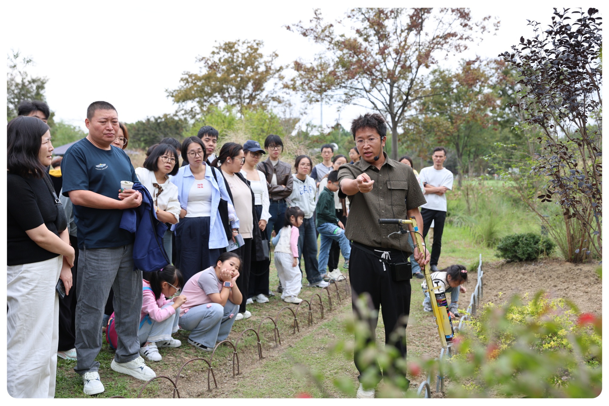 李旭文首先系统介绍了花境设计的基本原则,涵盖植物选材、色彩搭配与空间层次的营造技巧。随后,他现场完整演示了花境施工流程,从场地整理、植物配置,到栽植技法与后期养护要点,逐步拆解、细致讲解。
