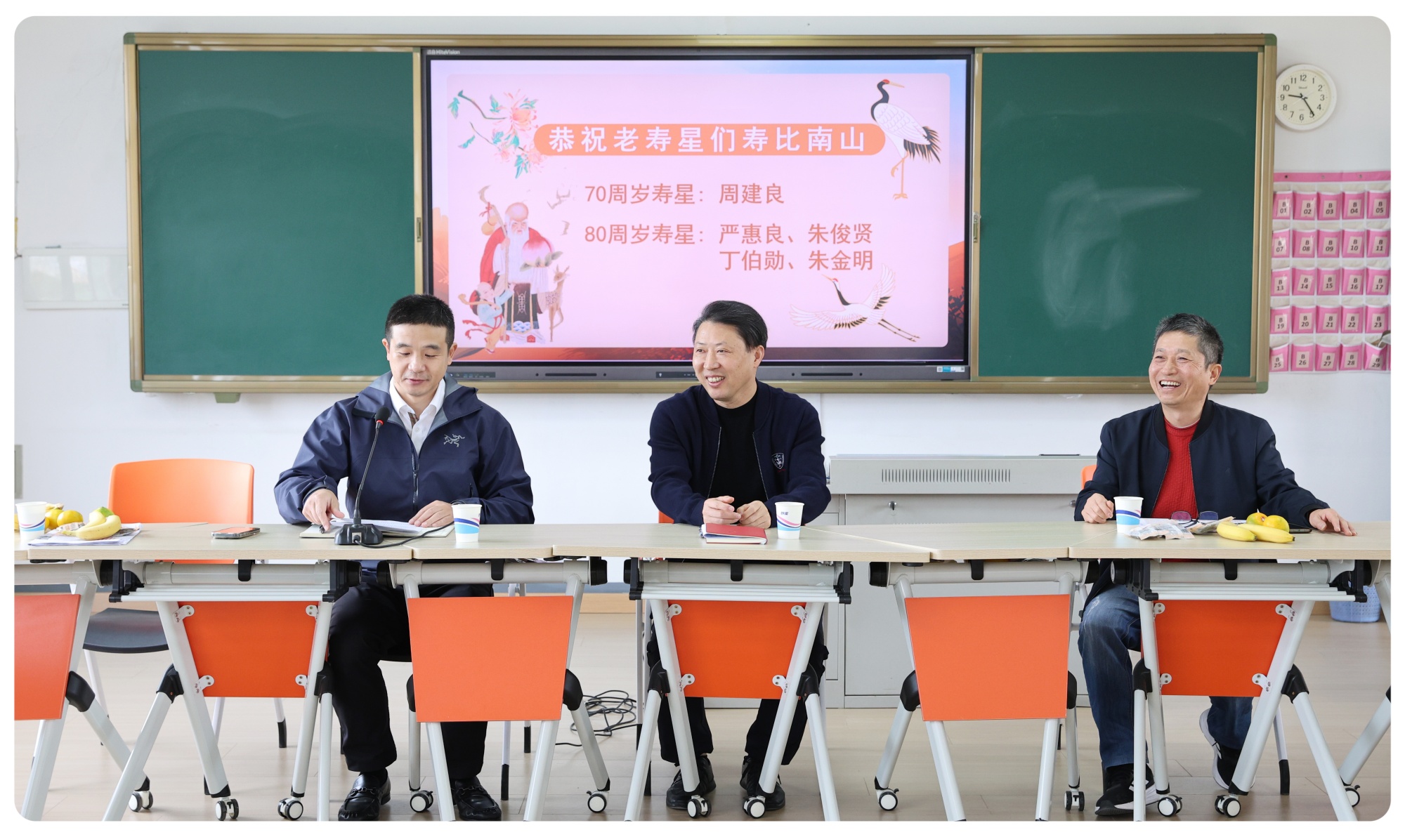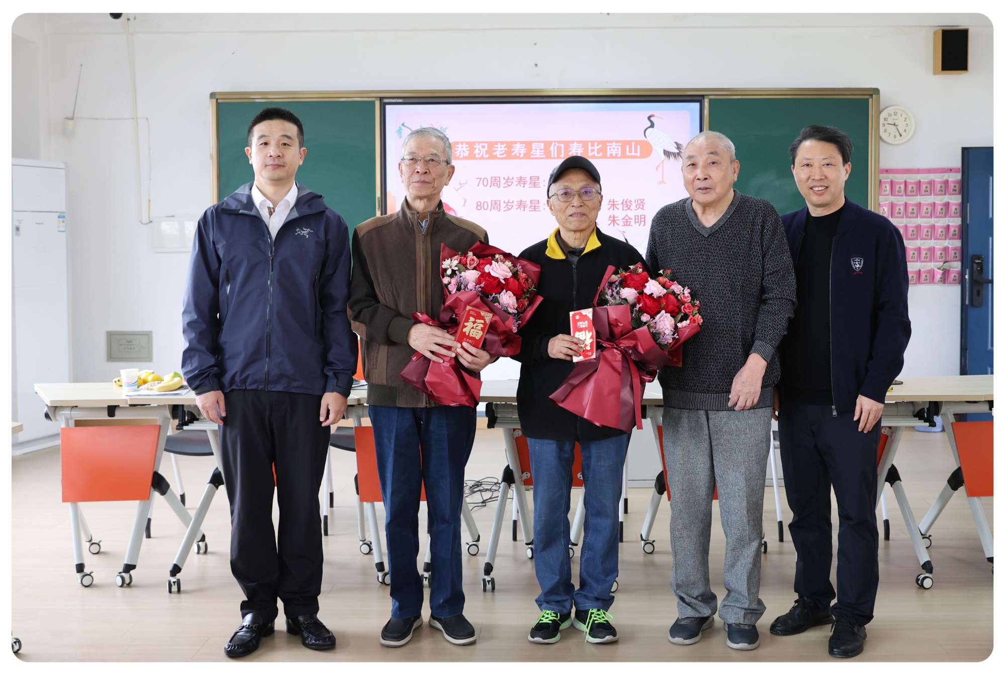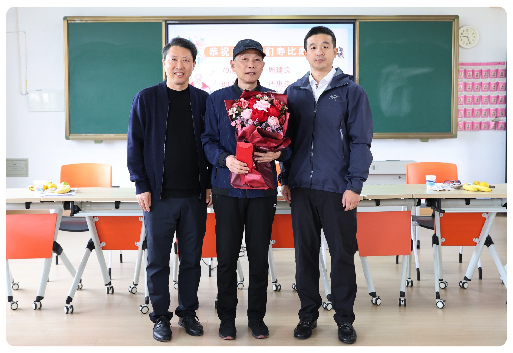 九九重阳,亦是敬老孝亲的传统节日。学院还特别为严惠良、朱俊贤、丁伯勋、朱金明四位老师庆祝八十大寿,为周建良老师庆祝七十大寿。学院领导向几位老师敬献鲜花、表达祝福,并与他们一同定格这温馨难忘的瞬间。在这洋溢着喜悦与祥瑞的日子里,祝他们福寿安康,愿他们如松柏长青,在太平盛世里尽享岁月静好,喜乐常伴。仪式结束后,全体老师共同分享了生日蛋糕,在欢声笑语中互致祝福,将喜庆温馨的氛围推向高潮。