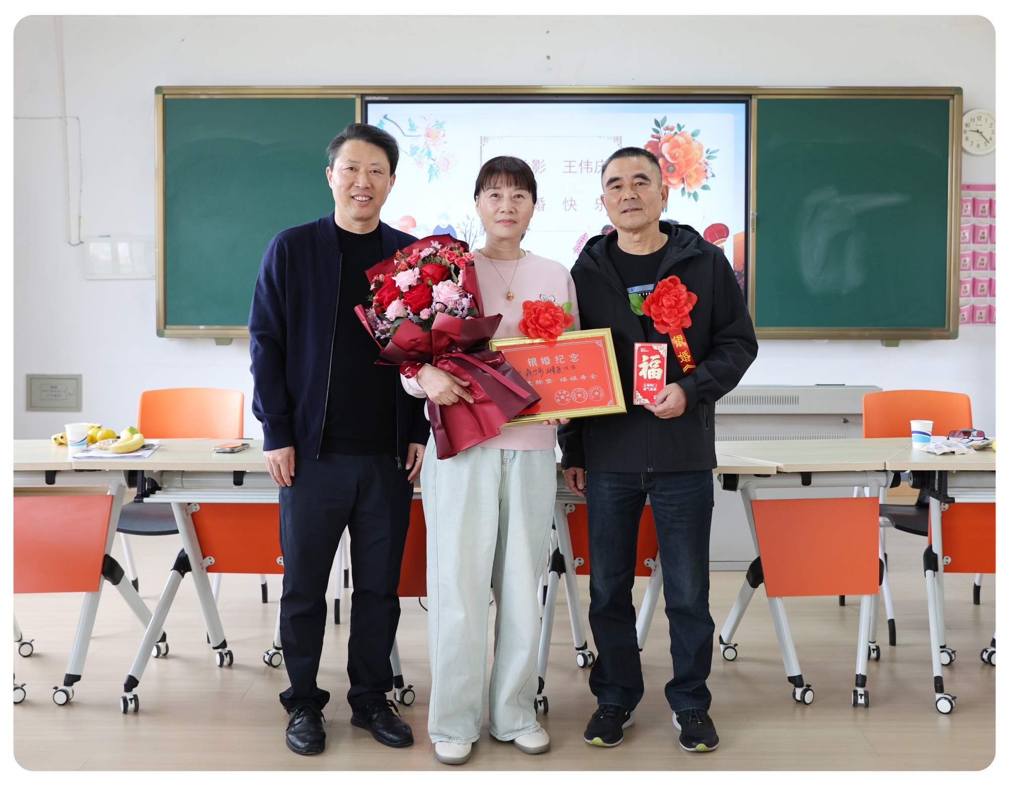 学院特为钱竹影、王伟庆伉俪举行温馨庄重的银婚纪念仪式。学院领导为二位佩戴红花、颁授纪念证书,并致以诚挚祝福。四十载相濡以沫,他们用质朴的陪伴诠释了爱情的真谛;半生风雨同舟,他们以坚定的相守谱写了人生的华章。这份岁月沉淀的深情,让在场所有老师无不为之动容,共同见证了这份历久弥坚的温暖。