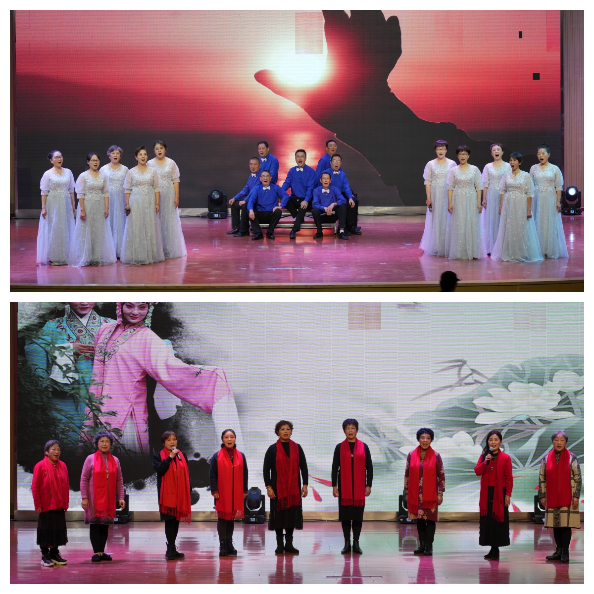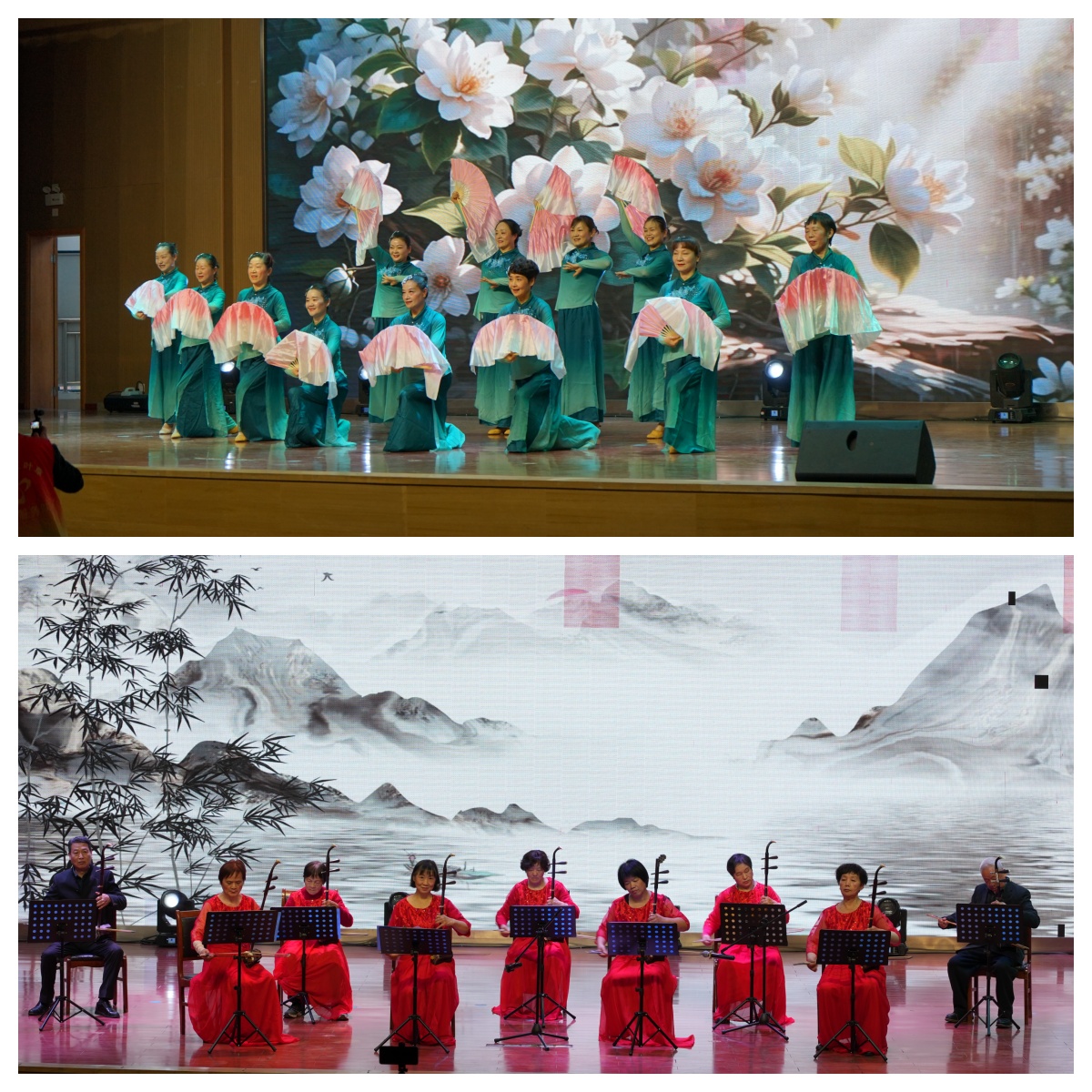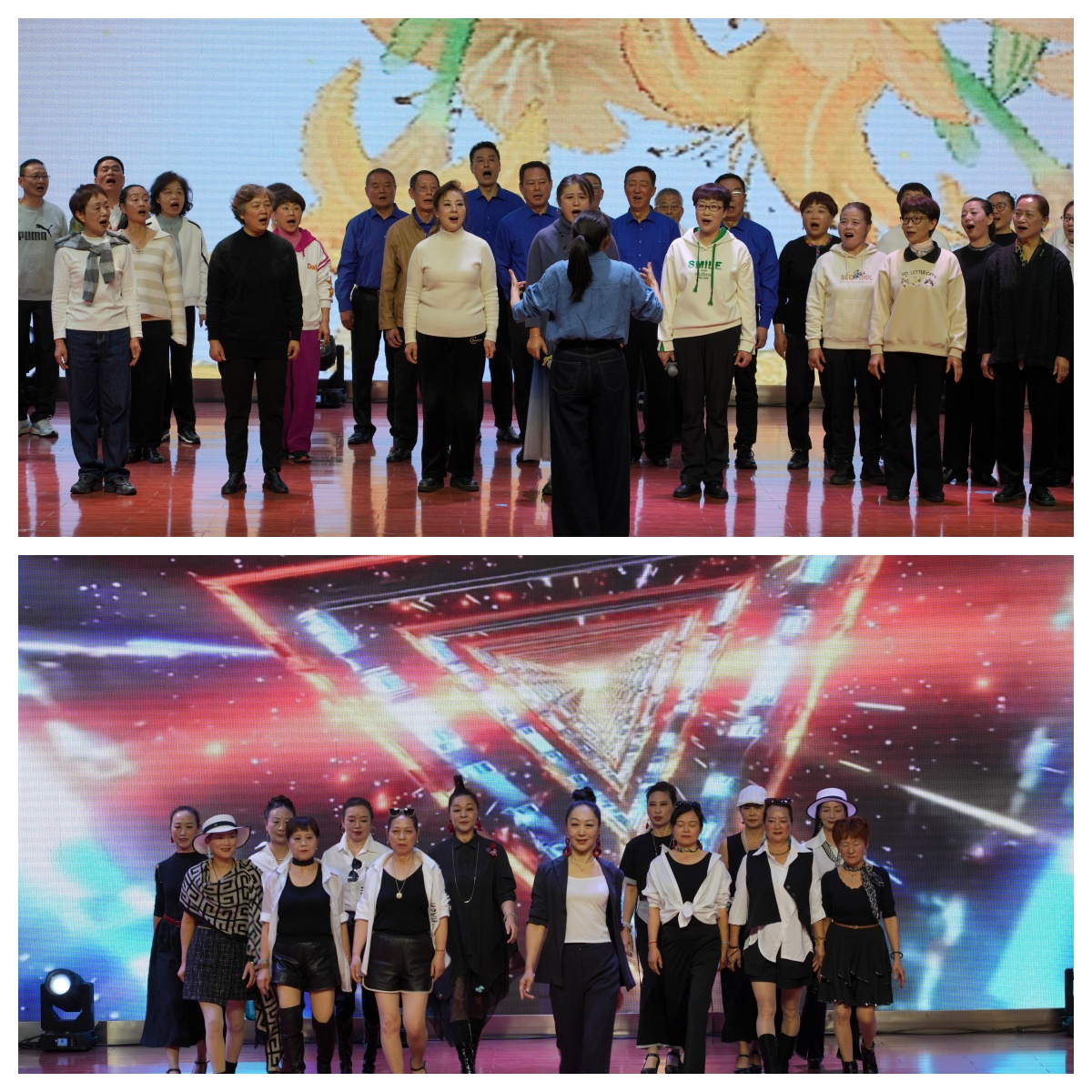 “银龄·向快乐出发”教学成果展演,将整场活动推向高潮。歌咏班以《萱草花》诉说亲情,《这世界那么多人》道尽人间温情;二胡班奏响《金蛇狂舞》,激昂旋律点燃全场;形体走秀班演绎《都市丽人》,步履生风、自信从容;越剧联唱《越韵缤纷》婉转悠扬,传承非遗之美;舞蹈《茉莉花》轻盈曼妙,尽显东方雅韵。最后,全体学员齐声合唱《小美满》,用歌声诠释“幸福不在远方,就在当下的学习与欢聚中”。