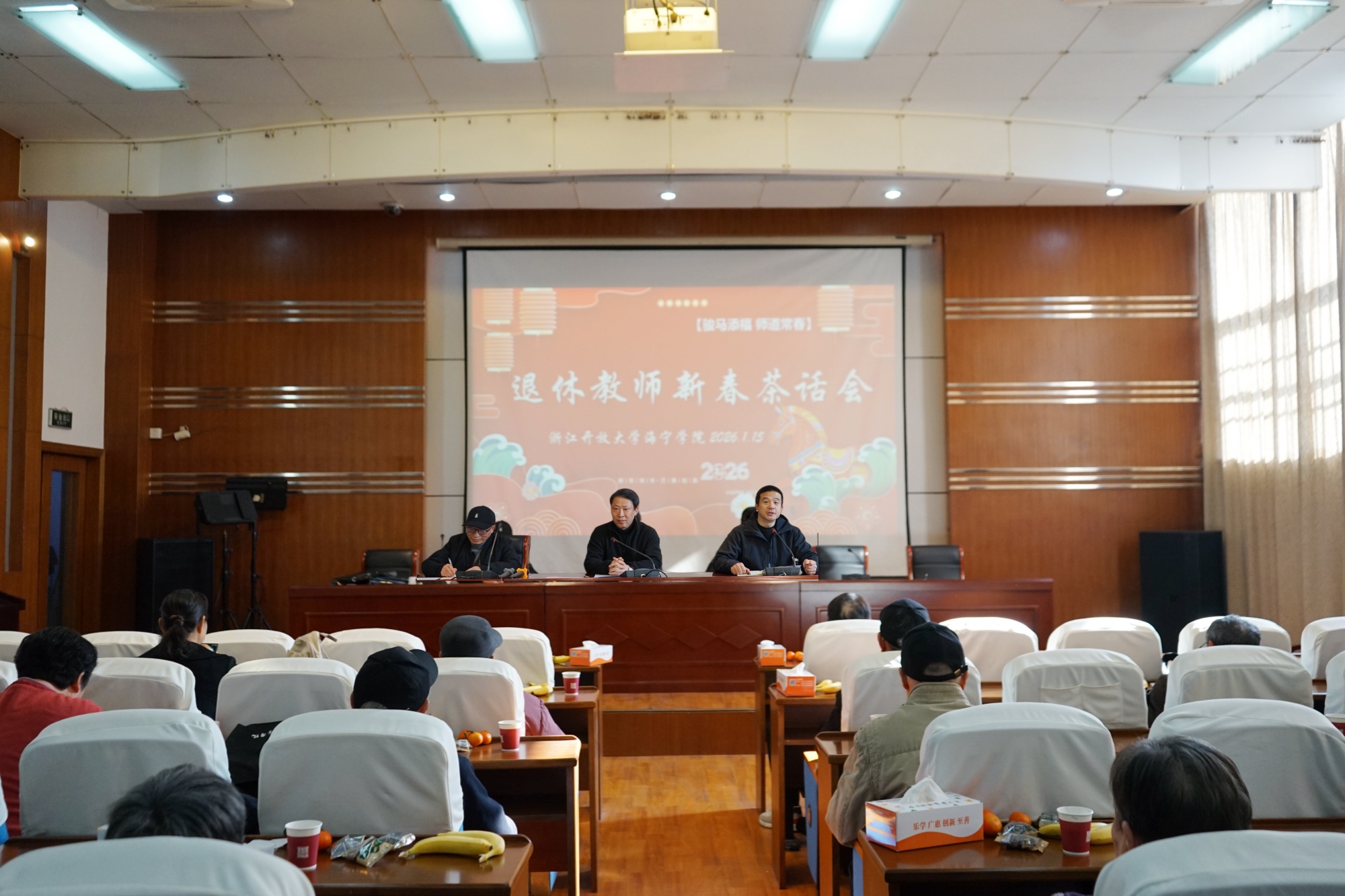 岁序更新,春意渐浓。为弘扬尊老敬老爱老的传统美德,表达学院对退休教师的深厚情谊,1月15日上午,浙江开放大学海宁学院在报告厅举办退休教师新春茶话会。院领导与退休教师欢聚一堂,共叙情谊,迎接新春。活动由学院副院长、工会主席倪斌主持。