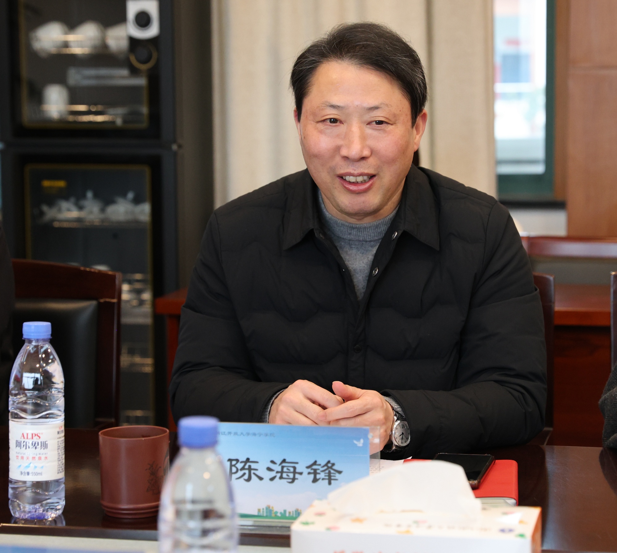 调研会上,陈海锋院长汇报了海宁学院招生工作情况,重点介绍了2025年招生成果,分享了相关经验做法,并从合作办学、连读激励和优质服务三个方面总结了海宁学院的招生工作心得。此外,陈院长还就2026年招生工作计划以及当前面临的困难进行了说明。