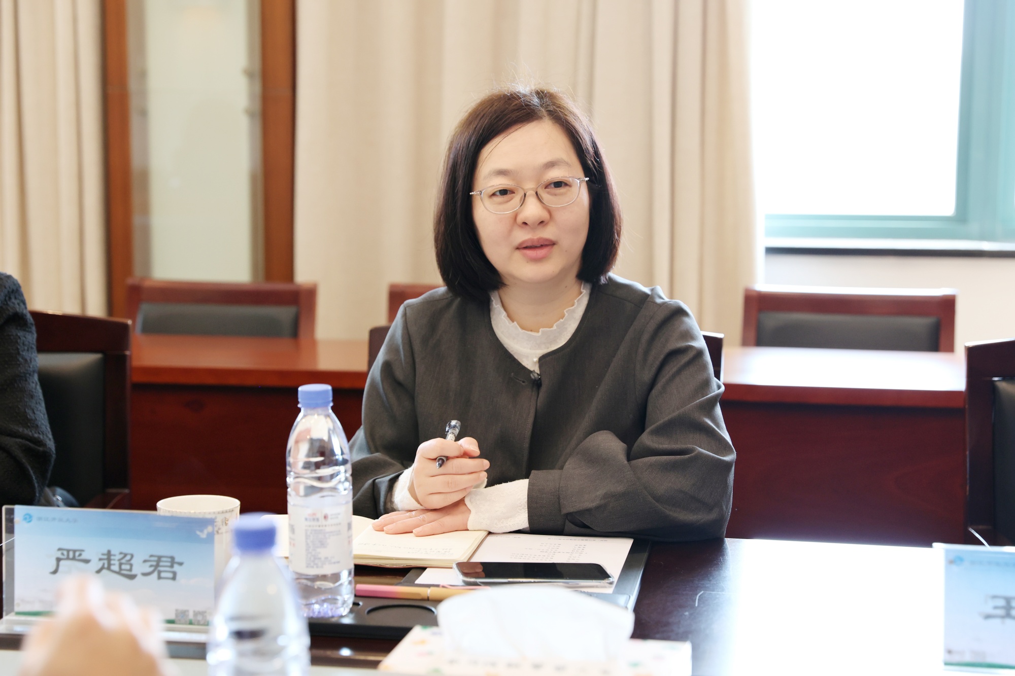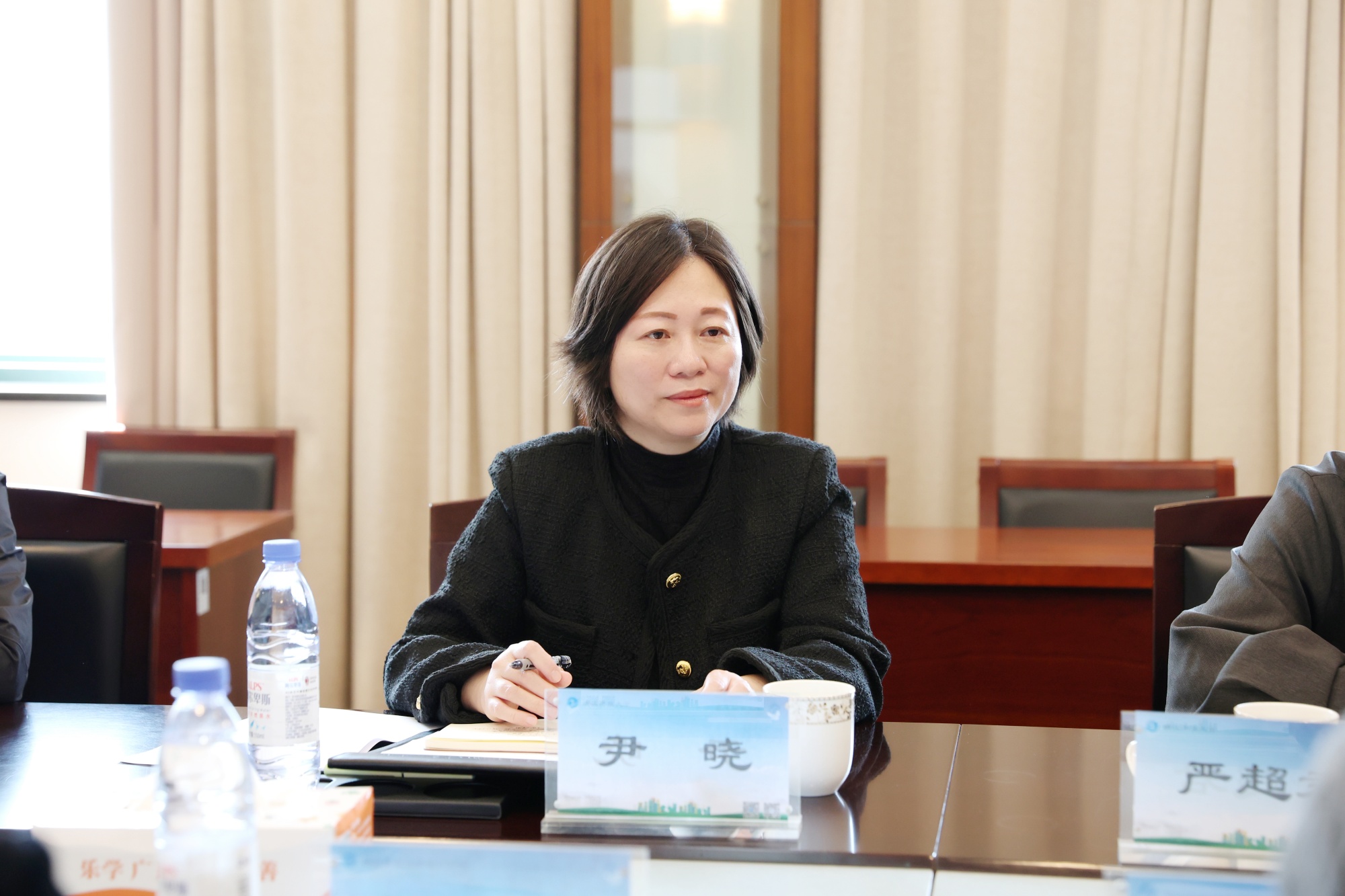 听取汇报后,马克思主义学院副院长尹晓对海宁学院扎实的工作和创新探索给予充分肯定。她指出,海宁学院在困境中主动担当、务实奋进,展现出强烈的责任意识。她进一步介绍了省开大正在推进人才培养模式改革,强调将人工智能赋能教学、服务终身学习,并表示将统筹社区教育类培训资源,助力基层教师能力提升。